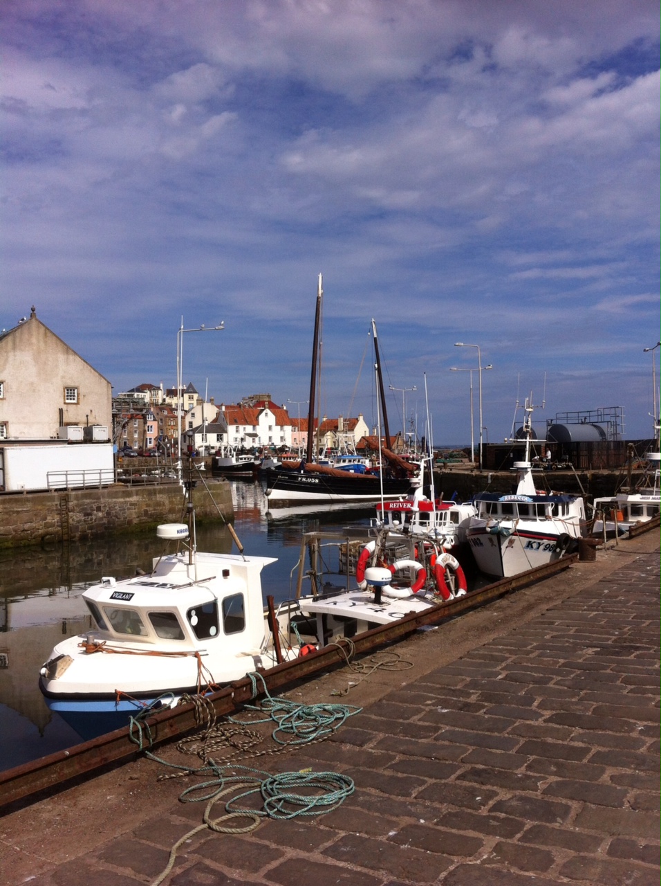 So, why that slight queasiness? Well, Pittenweem is still the most active fishing port on the Fife Coast, with a large number of boats going after shellfish, lobsters and clams. The harbour is often very busy, with a handsome Fishmarket that was built as recently as 1994, and a number of related businesses in the town itself—fishmongers, chandlers and the like. But it seems to be the art that has brought prosperity back to the village: several galleries, studios, and art materials shops, many working artists living in the village, a number of apparently thriving cafes and restaurants. All the evidence, that is, of gentrification.