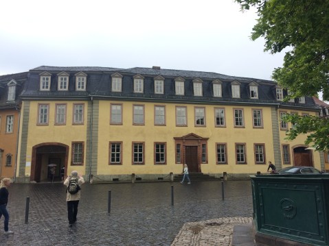 On our previous trip, a few years ago, we had visited Goethe’s house: an eerie experience, as there are no labels or captions, and no electric light, and the excellent audio guide persuades you that a member of Goethe’s family might turn the corner at any moment. This time we visited the corresponding Schiller house, and had a very similar enthralling, and enlightening, experience, even though a much greater proportion of the contents were not linked to Schiller’s family, but only generally to his time. One gets the sense that the importance, in Germany, of these two great writers lies almost as much in their lives as in their works, as exemplars of fulfilment through bildung. I was reminded strongly of the conventions of hagiography, as if Goethe and Schiller were being given the status of secular saints, a process which always carries the danger of smoothing out the wrinkles of their lives as lived, and making them seem, ultimately, something more—or less—than human.