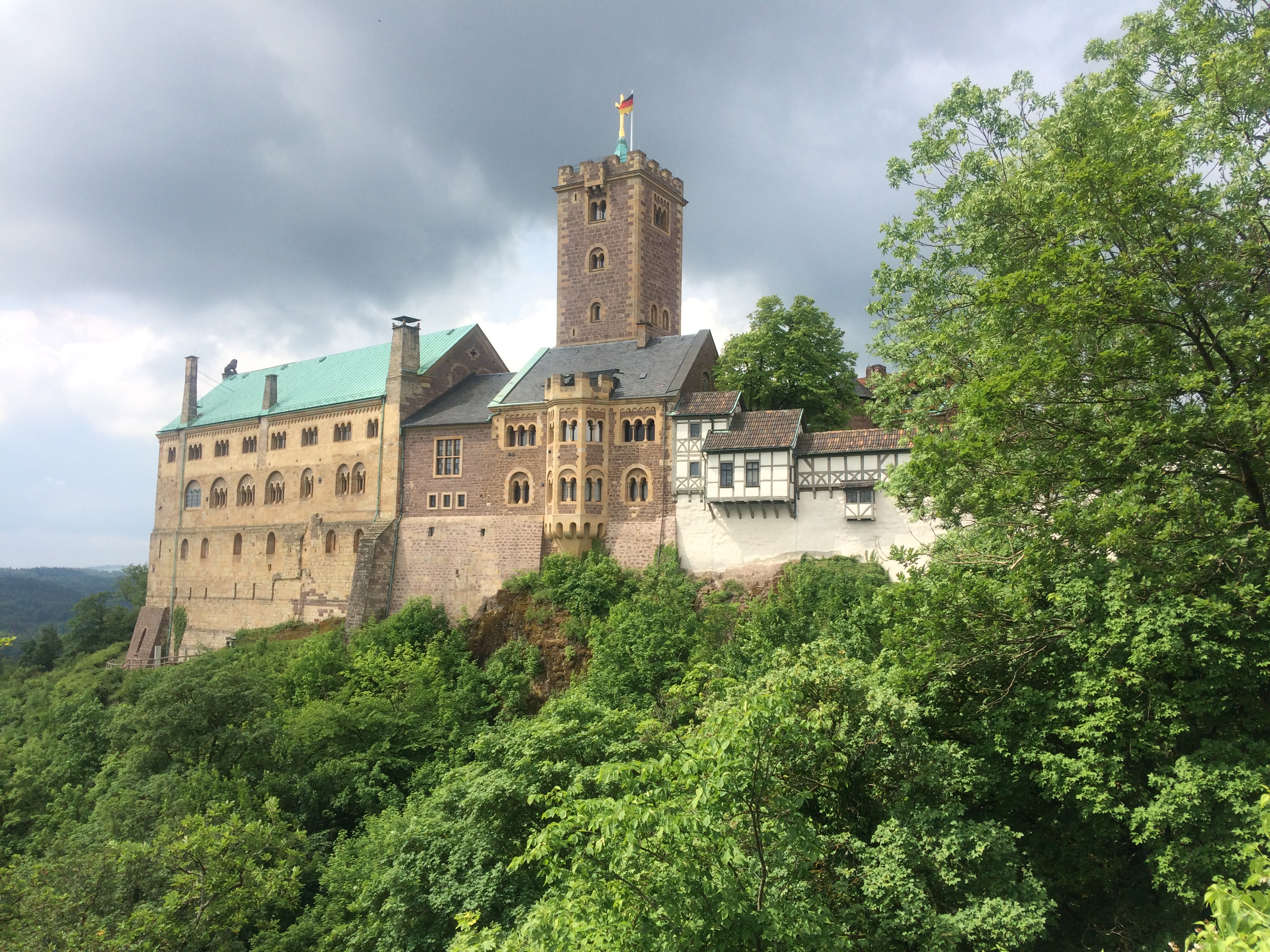 ‘The weight of history’ is a phrase that kept occurring to us on this tour, but in few places was it as palpable as in this extraordinary confection of a medieval castle. This is where the 13thcentury contests of Minnesingers were held that form the basis of Wagner’s Tannhäuser, and many other legends. St Elizabeth of Hungary (and Thuringia) was chatelaine here, and was canonised just four years after her death in 1231. Luther hid out here, disguised as ‘Junker Jorg’ and wrote much of his translation of the New Testament while under cover, and you can see the cell where he worked, purportedly original. Which is more than can be said for his so-called cell in the Augustiner Monastery in Erfurt, which has been rebuilt at least twice. And in 1817, exactly 300 years after Luther kicked off the Reformation, German students held a fraternity meeting in the Wartburg, a meeting which is seen in retrospect as an important milestone on the road to German unity, thus making the castle today a pilgrimage site for certain right wing nationalist groups as well as for Protestants from all over the world.